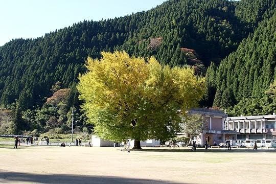 日南町の旧日野上小学校のグランドに大きなイチョウの木があります